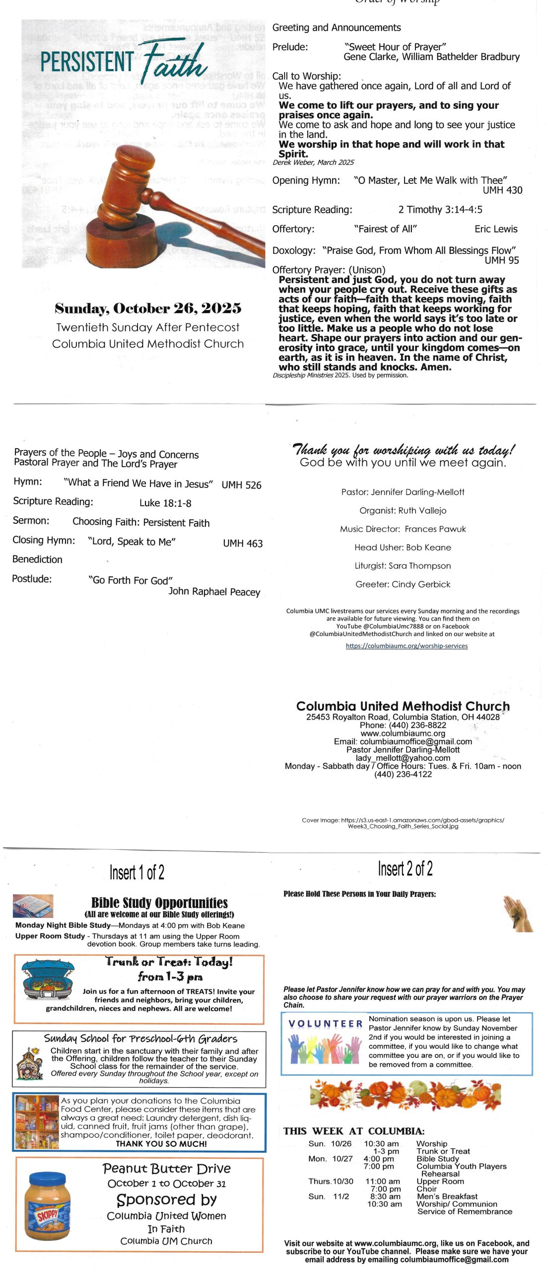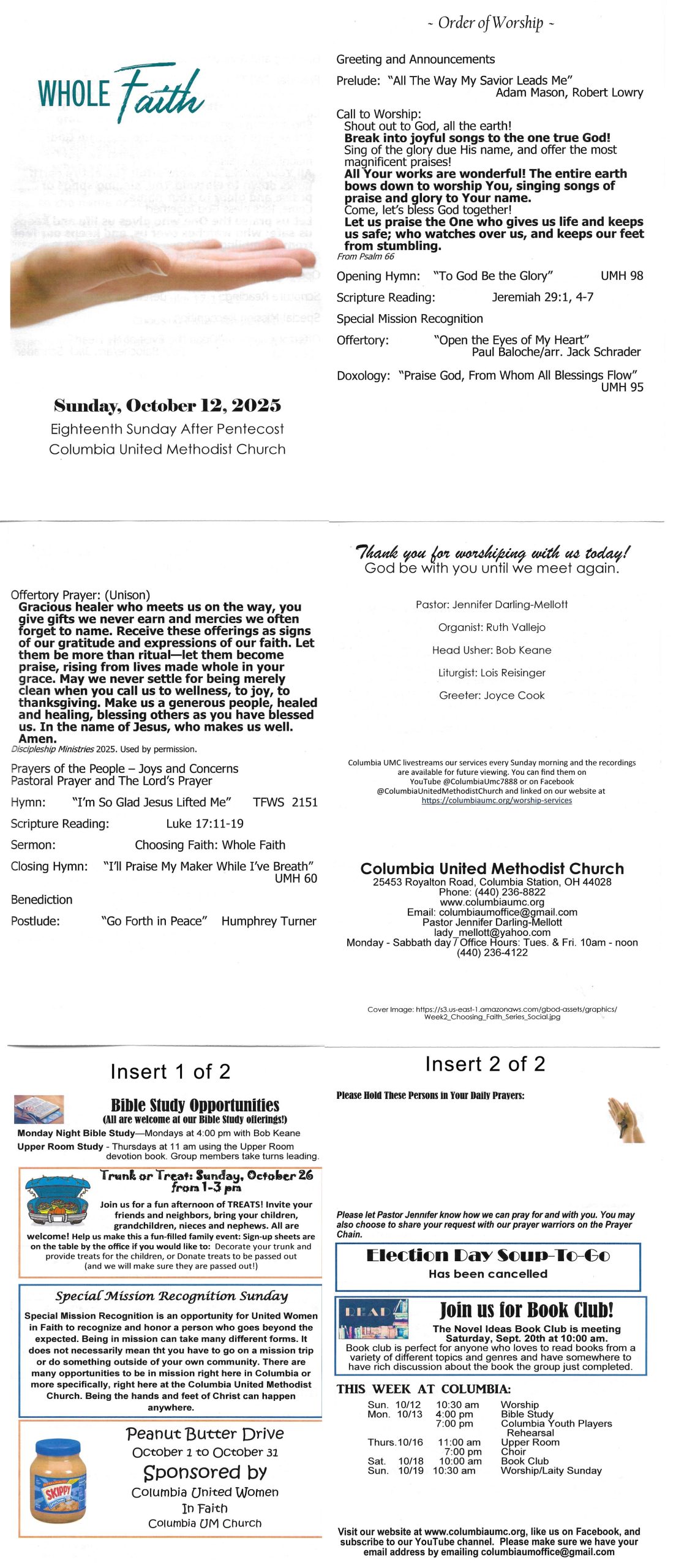 Online services: We began live-streaming to YouTube on October 1, 2024. Go to our YouTube channel (columbia umc) and click the “live” button. There are several Columbia UMC churches on YouTube so look for the “Quilt Logo” in the circle. Once there, subscribe to our channel for easier future access. A back up recording will be made available later on Sunday in the event of a service interruption.