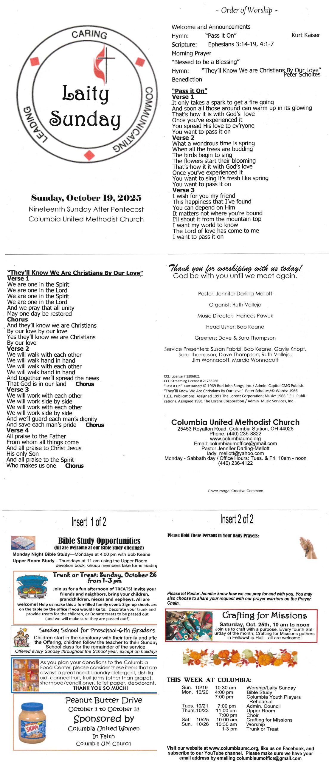 Link to Streaming Sunday 10/19/2025. Click on Sunday Service Live.