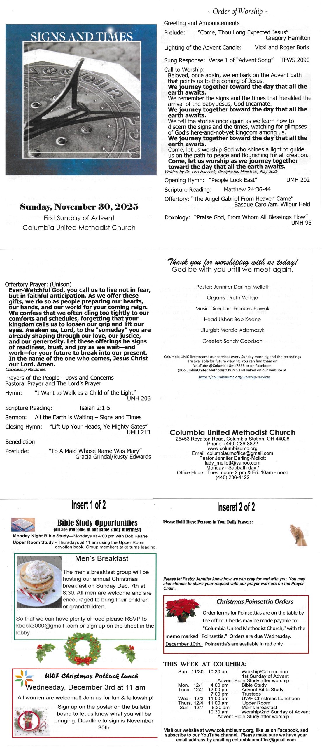 Link to Streaming Sunday 11/30/2025. Click on Sunday Service Live.