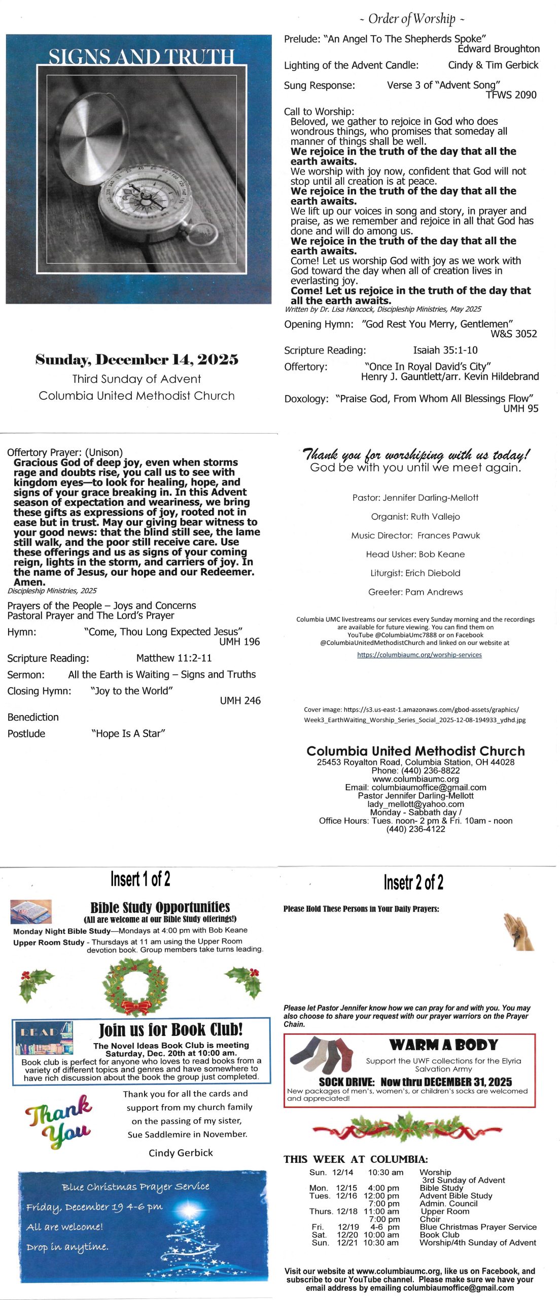 Link to Streaming Sunday 12/14/2025. Click on Sunday Service Live.